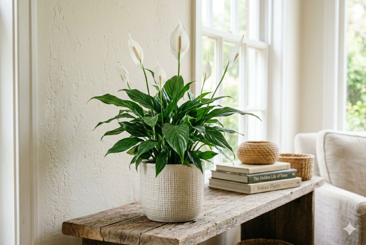 Tra le piante più eleganti e facili da gestire troviamo anche lo Spathiphyllum, noto come “giglio della pace”. Oltre alle foglie lucide e decorative, produce caratteristici fiori bianchi. Ha bisogno di annaffiature regolari ma segnala chiaramente quando ha sete, abbassando le foglie: un vantaggio per chi tende a dimenticarsi di innaffiare.